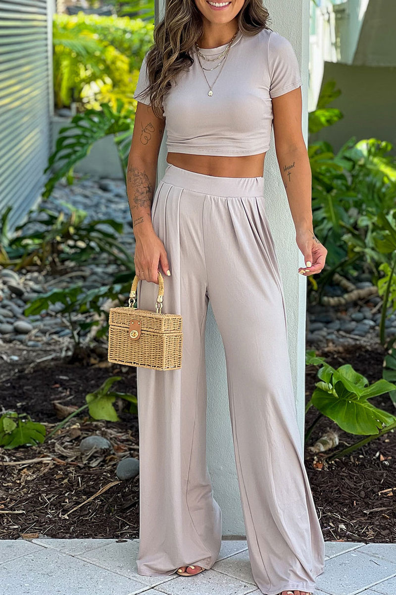 YAY, this adorable Beige Crop Top And Pants Set is now available! We absolutely love its cute Forrest Green color, very cool pleats and an awesome ribbed material!