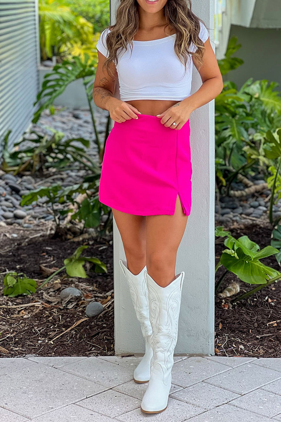 WOW, we are head over heels for this prettiest ever Fuchsia Skort With Side Slit! This amazing skort features a gorgeous Fuchsia color and a cute slit. Perfect bottom to dress up or down for any occasion.