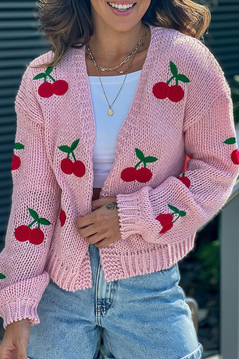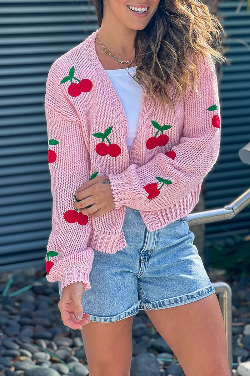 SUPER Adorable! We are so excited about this awesome Light Pink Cherry Cardigan that is now available! We love the cute cherry print and cropped style. Pair it with anything - like jeans, leggings, tops, and accessories!