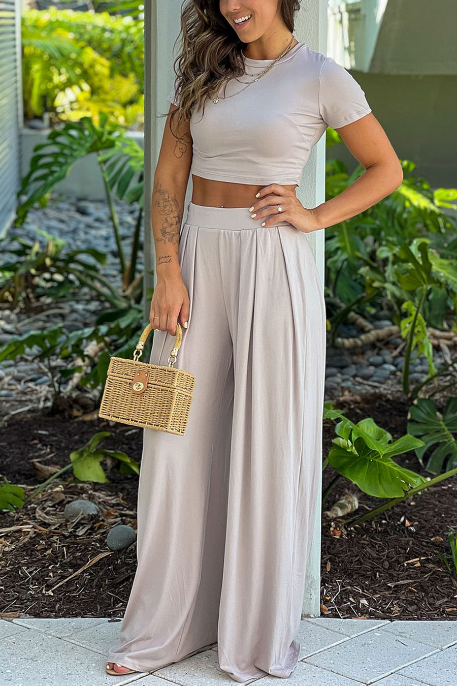 WOW, we are head over heels for this most comfy and cute Oatmeal Crop Top And Pants Set that is now available! This amazing outfit is a must have addition to any woman's summer wardrobe!