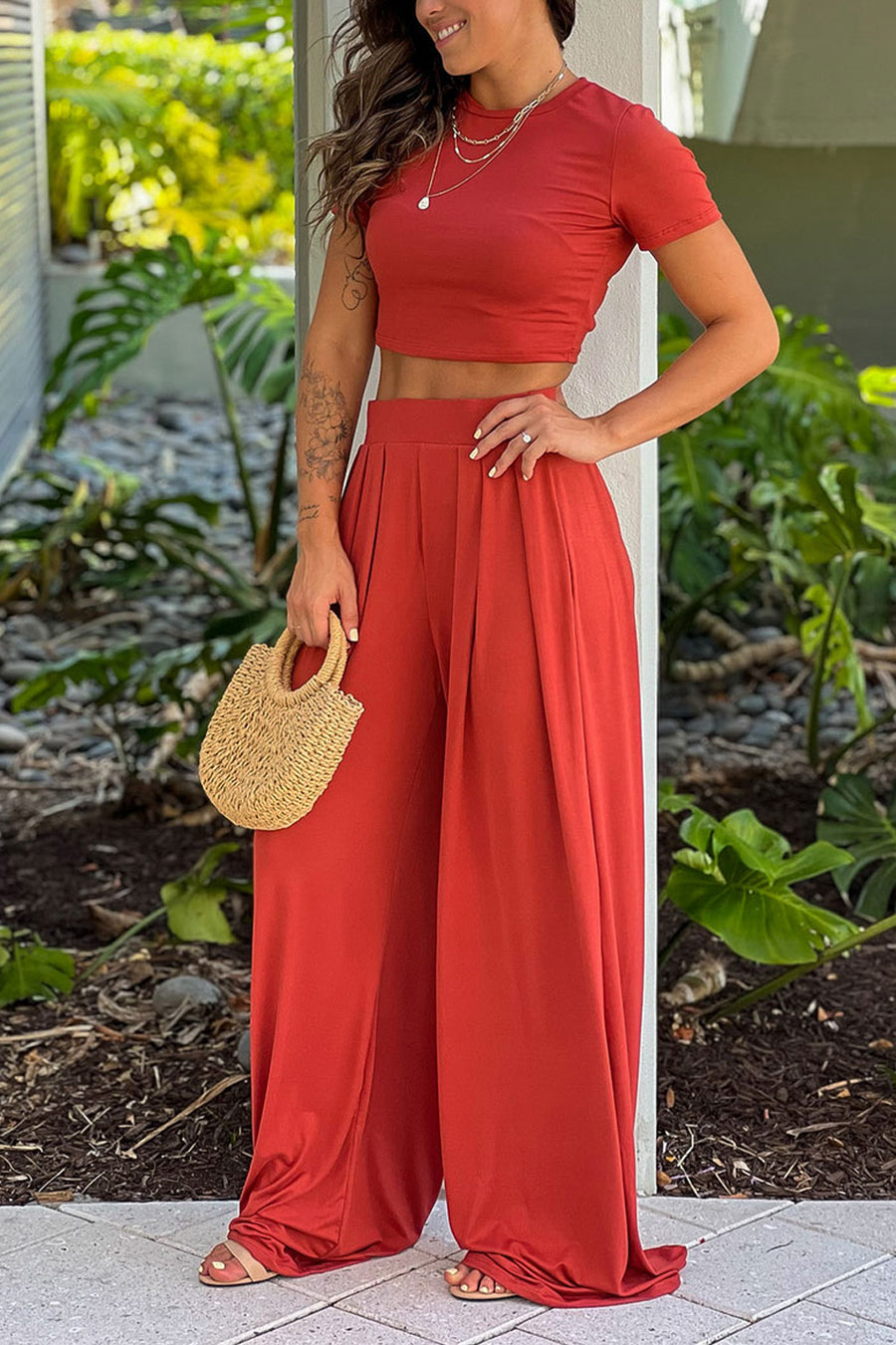 WOW, we are head over heels for this awesome Rust Crop Top And Pants Set that is now available! Check out its gorgeous Rust color and very comfy pants and a cute crop top!